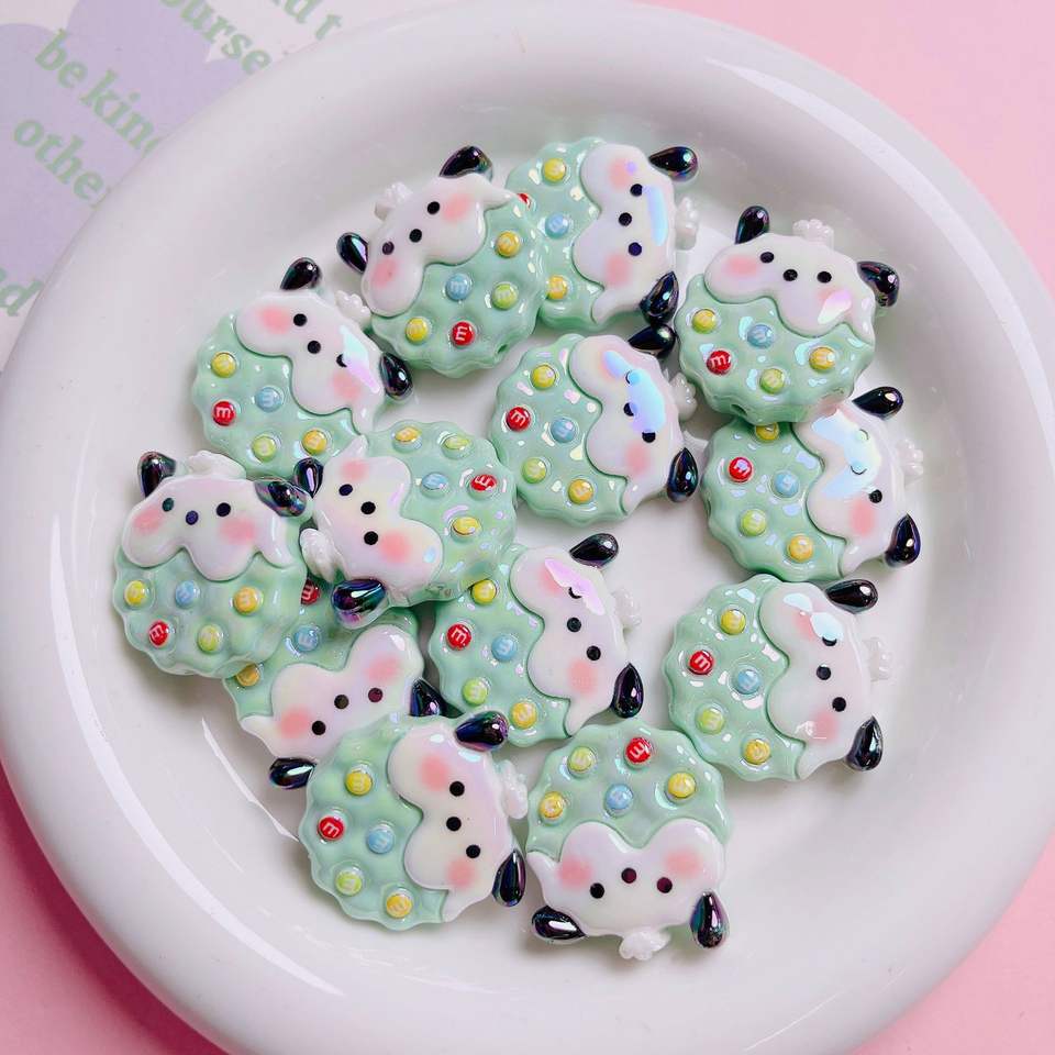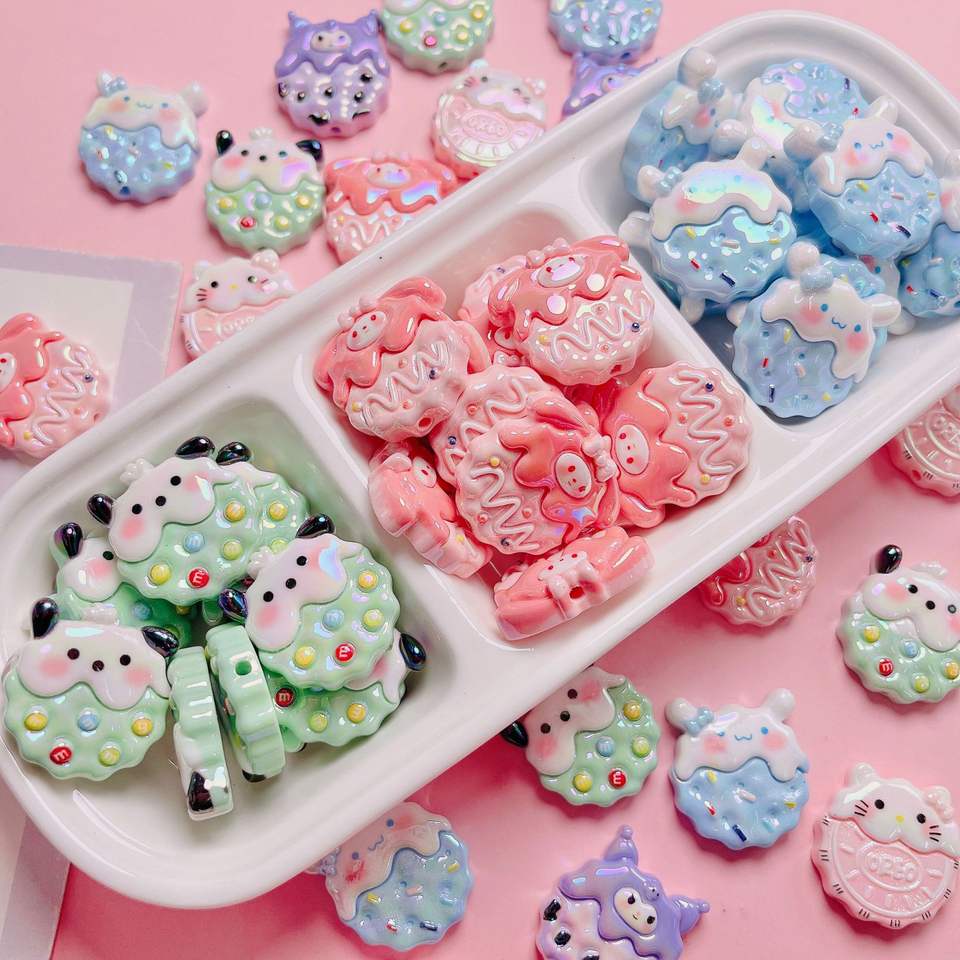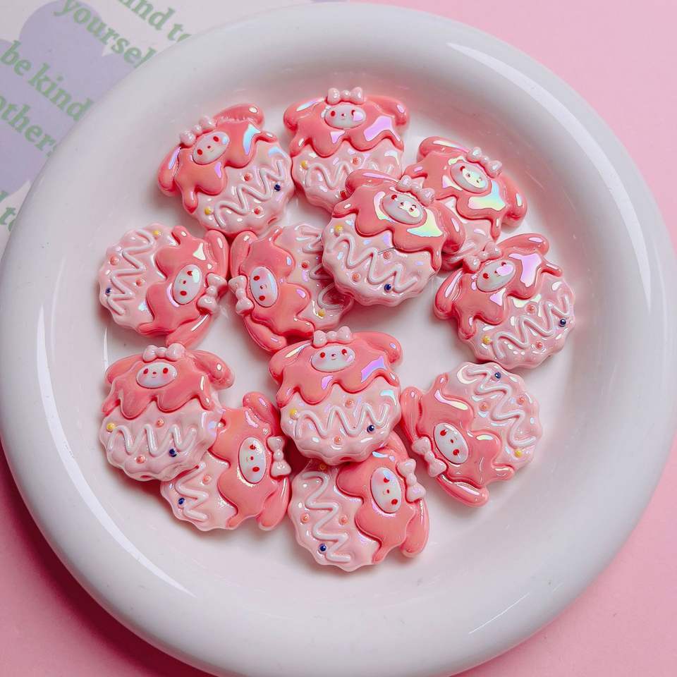 Dessin animé UV galvanoplastie acrylique Biscuits trou droit perles 30mm multicolore bricolage matériaux faits à la main chaîne de téléphone portable
