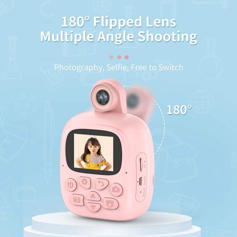 Appareil photo instantané pour enfants, dessin animé, 48 millions de pixels, papier photo numérique pour garçons et filles, mini appareil photo, écran de 2,4 pouces, 180 degrés de largeur