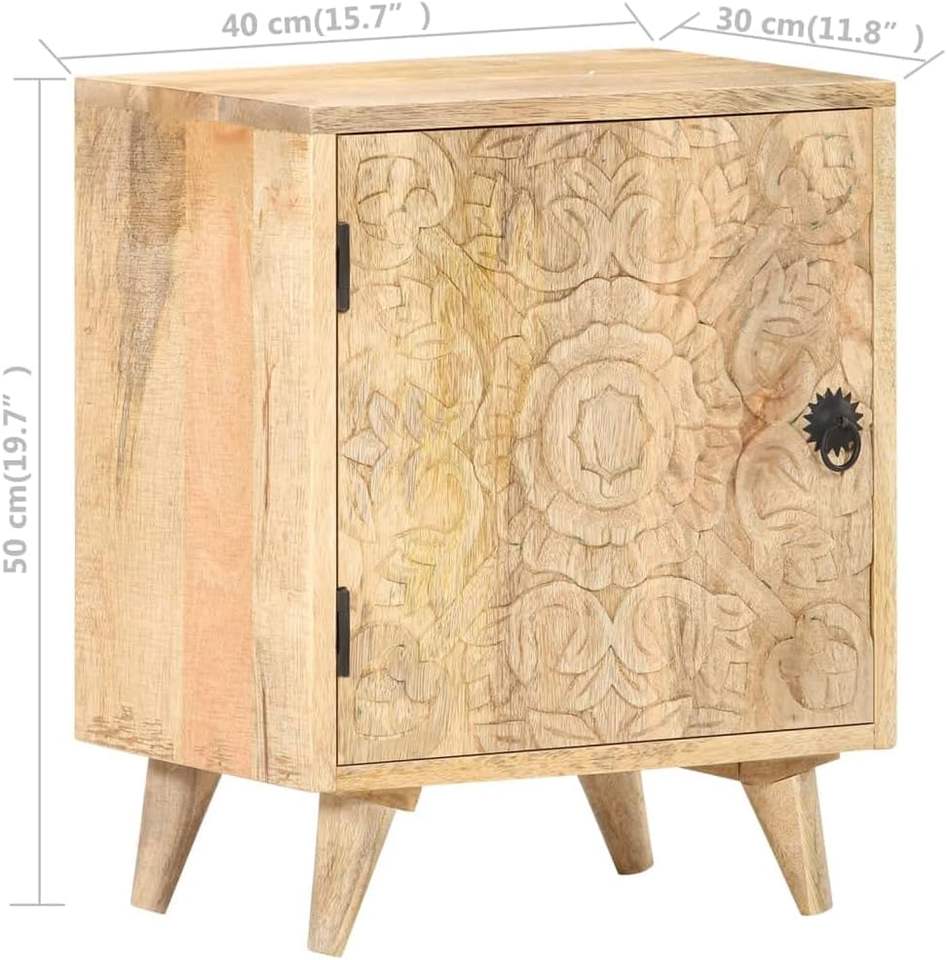Table de chevet en bois de manguier massif sculpté : Tables de chevet rustiques en bois pour chambre à coucher ou salon, meuble de rangement sculpté