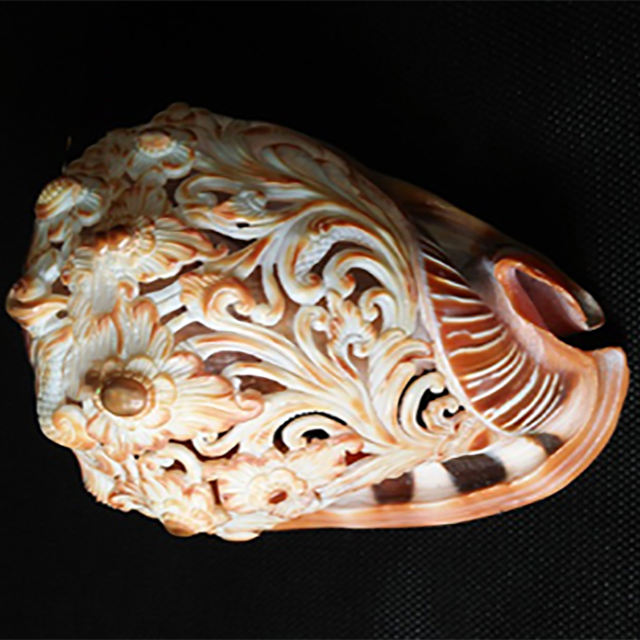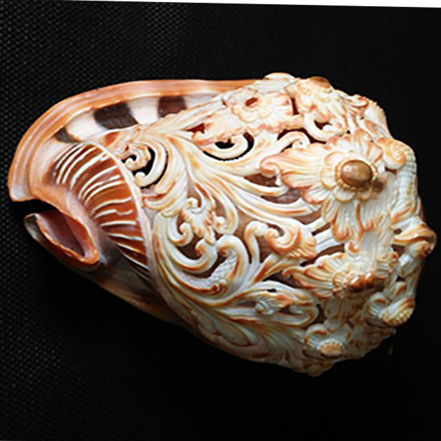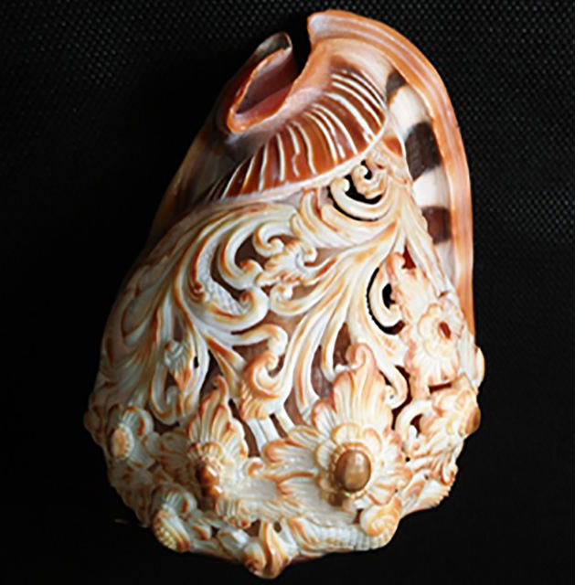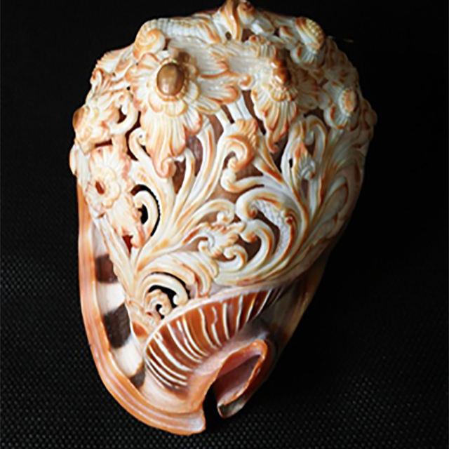 Art de la sculpture à Melo Shell BIJOUX EN COQUILLAGE avec motif de coquillage poli Fleur balinaise Artisanat décoratif Type ivoire