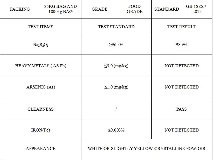 Sodium MetabisulfiteType