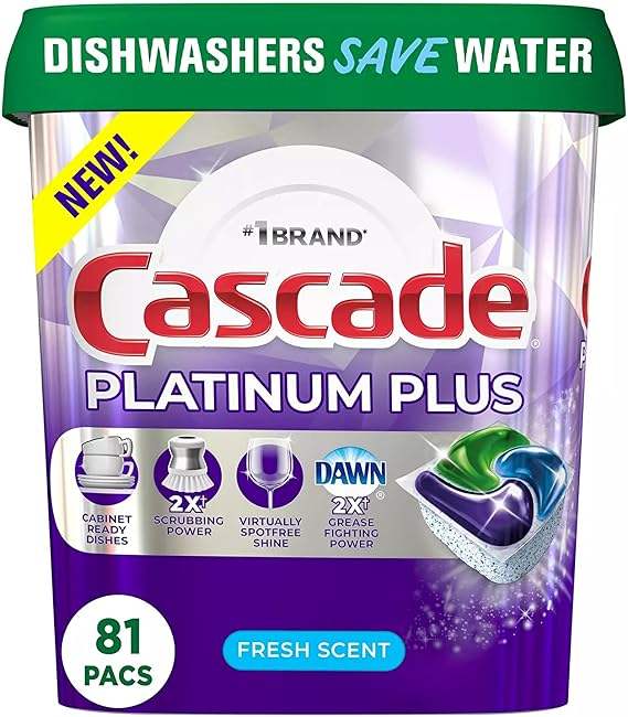 Cascade Platinum Plus ActionPacs Dosettes de détergent pour lave-vaisselle, parfum frais (81 ct)
