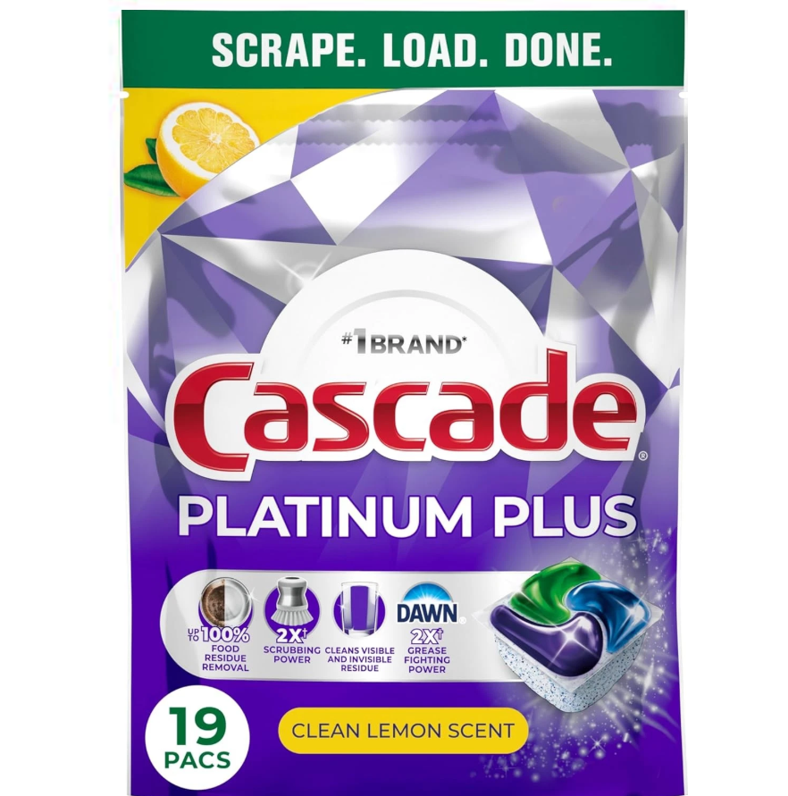 Cascade Pure Essentials, pastilles de détergent pour lave-vaisselle, parfum citron