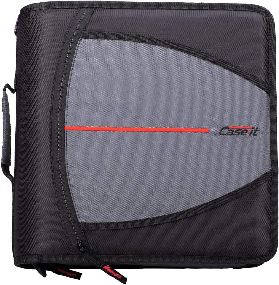 Classeur à fermeture éclair Case-it, 2 pouces, 3 anneaux, capacité de 500 feuilles, organiseur multi-poches adapté au collège
