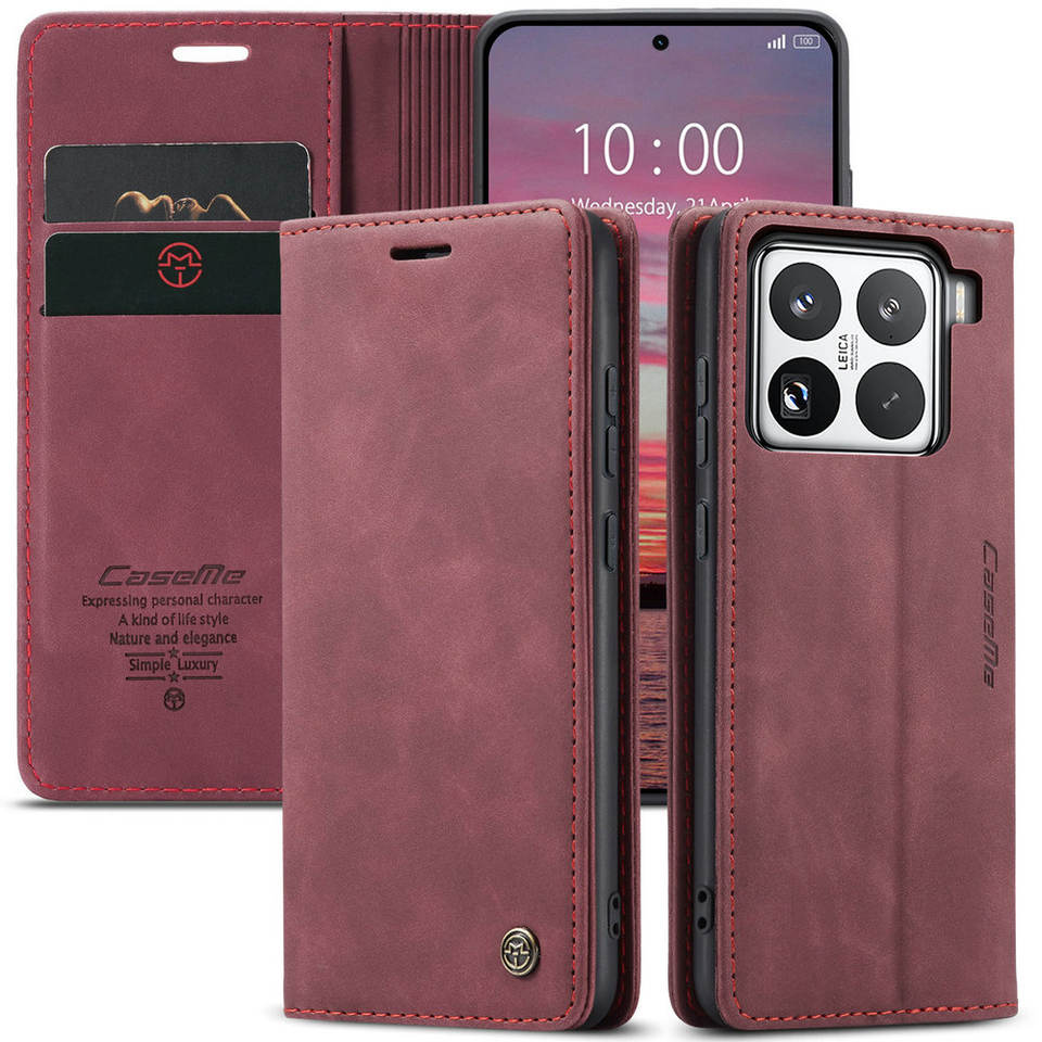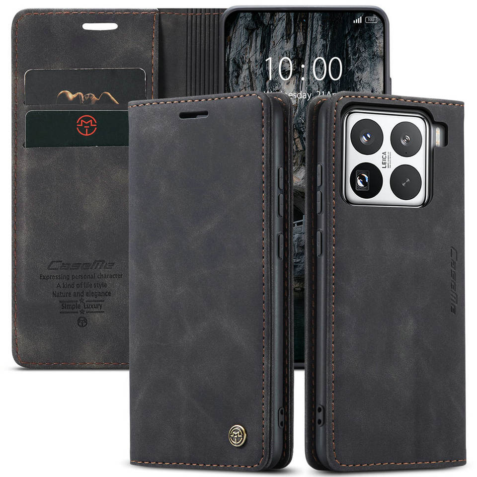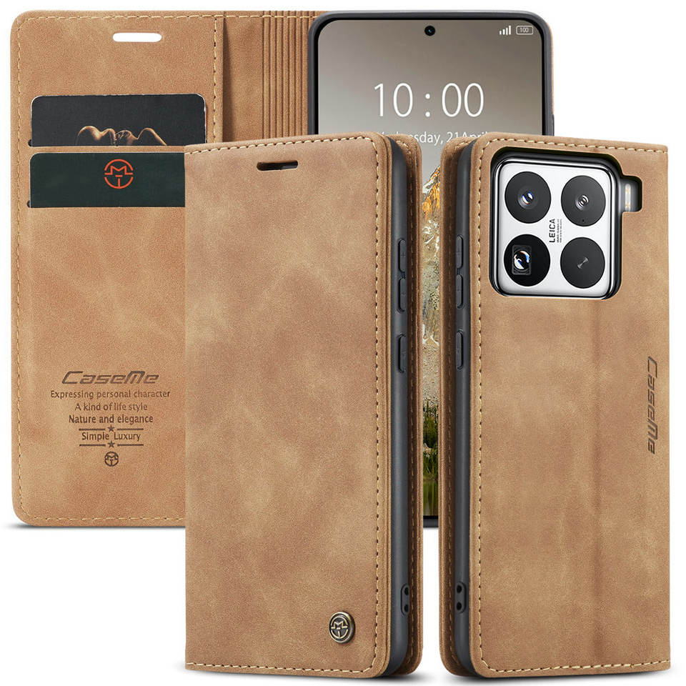 CaseMe étui portefeuille rétro magnétique pour 15T Pro avec béquille pour carte de crédit Folio en PU gaufrage