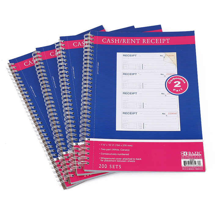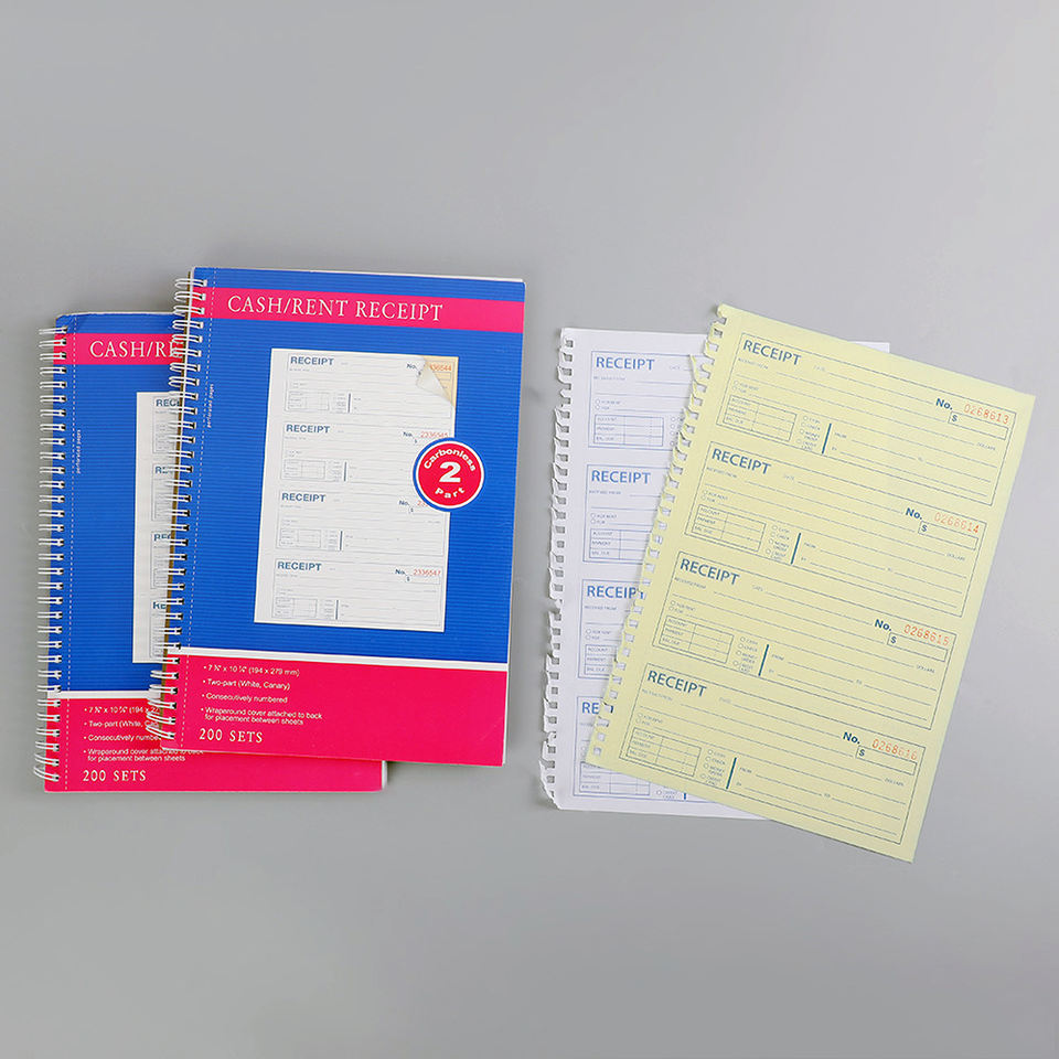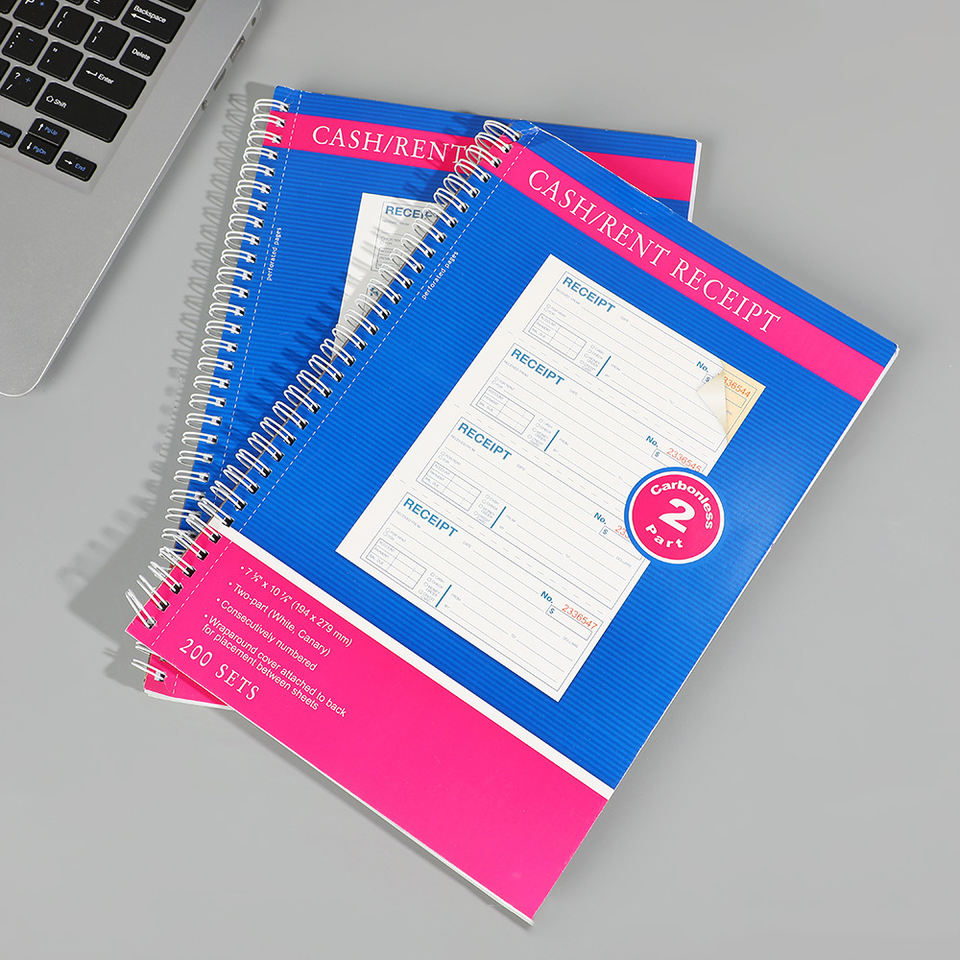 Cash Rent Receipt 2-Ply Carbonless Copy Paper Financial Sales Voucher Bill Book Tear-off Perforation Line Spiral Log Notebook