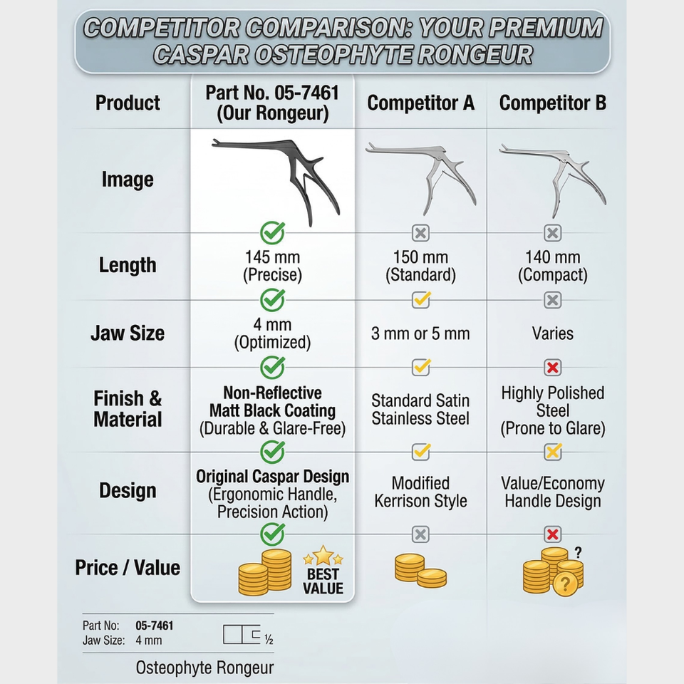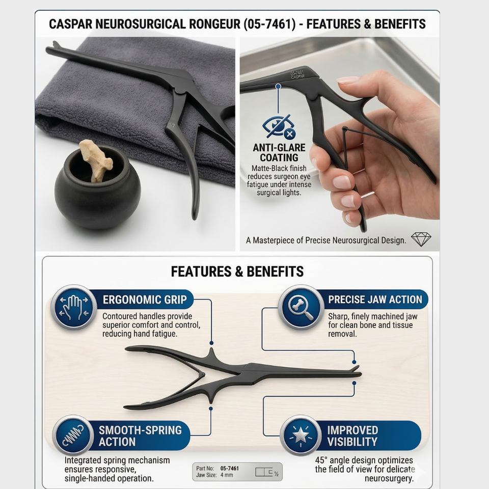 Rongeur à osselets Caspar 4mm × 145mm | Instrument chirurgical orthopédique de pointe en acier inoxydable pour la colonne vertébrale | Chirurgie Neurologique et de la Colonne Vertébrale