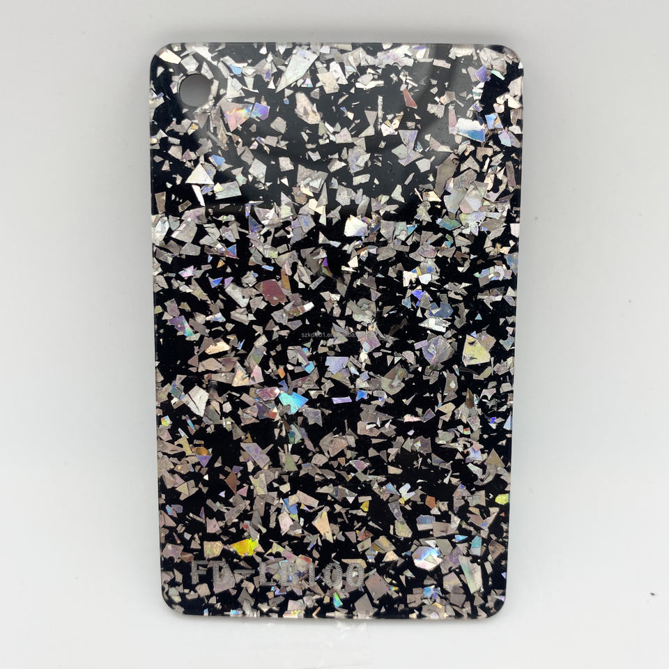 Feuille acrylique coulée fond noir avec paillettes/étincelle/poudre d'oignon coloré Feuilles de plastique PMMA pour matériaux de