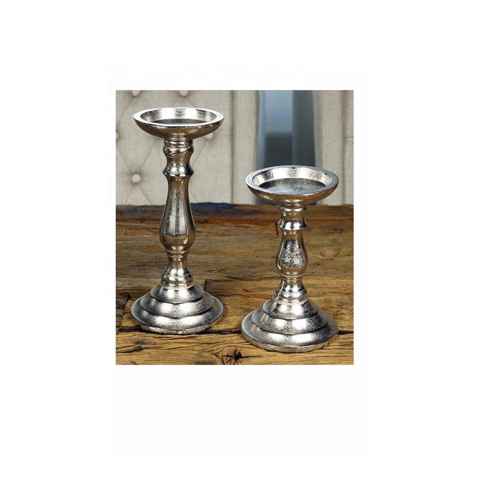 Bougeoir pilier deux tailles en fonte d'aluminium poli miroir pour la décoration de la maison fête de mariage artisanat en métal artisanal pour Noël
