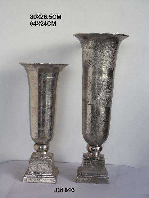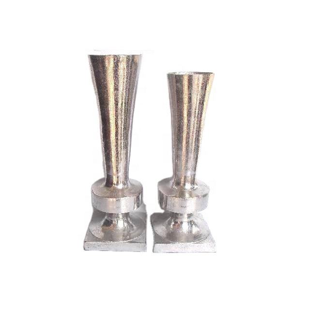 Vase en aluminium moulé en forme de cône sur base carrée, finition nickel brut, décoration intérieure, artisanat métallique, vases