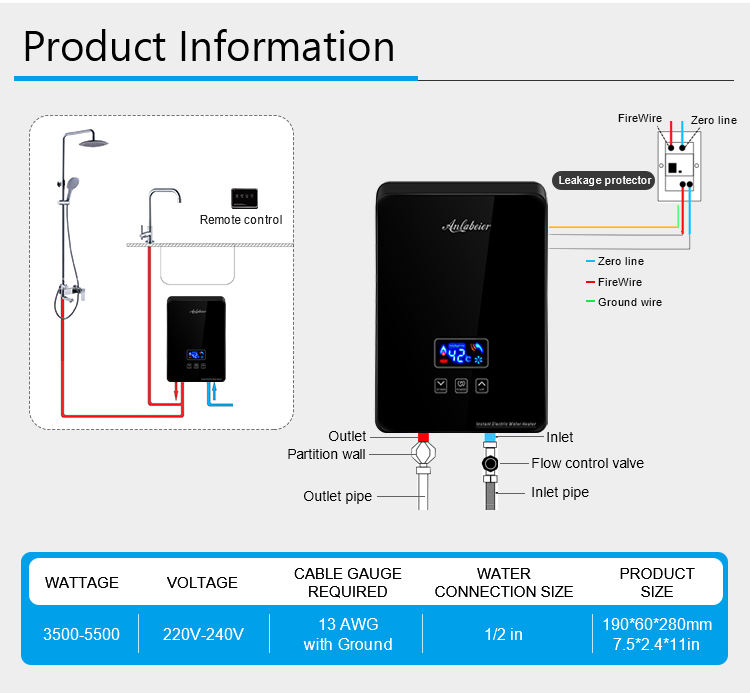 Product name:instant kitchen electric water heater fo