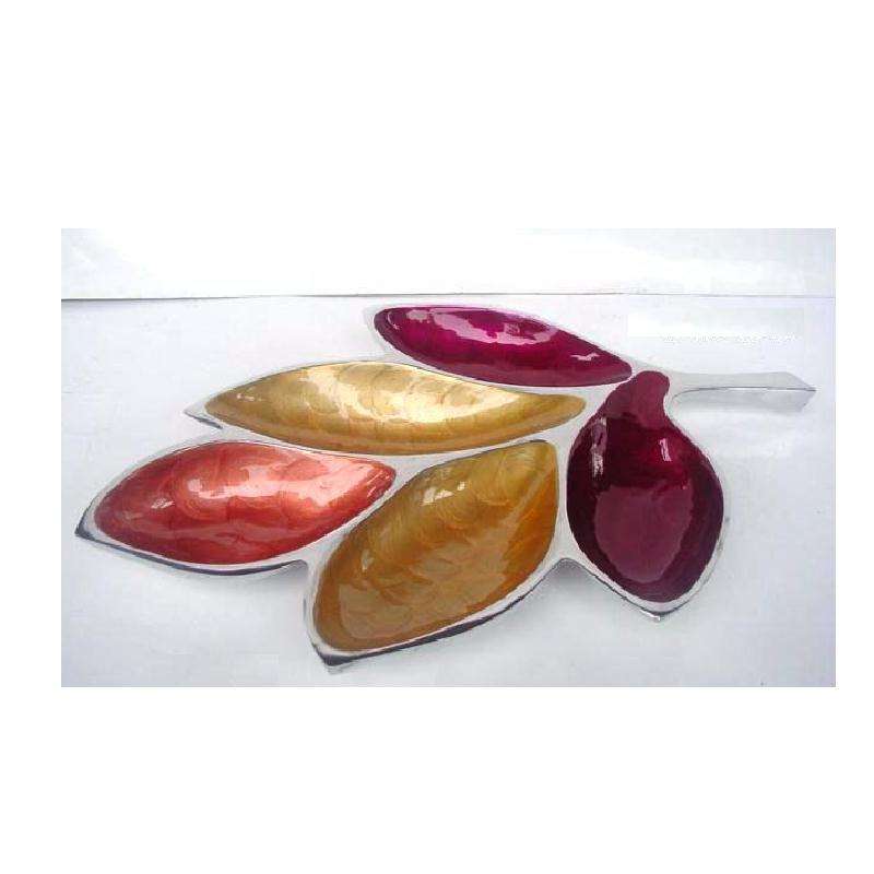 Bol en forme de feuille en fonte d'aluminium avec émail sans danger pour la décoration de la maison et bol de service en métal