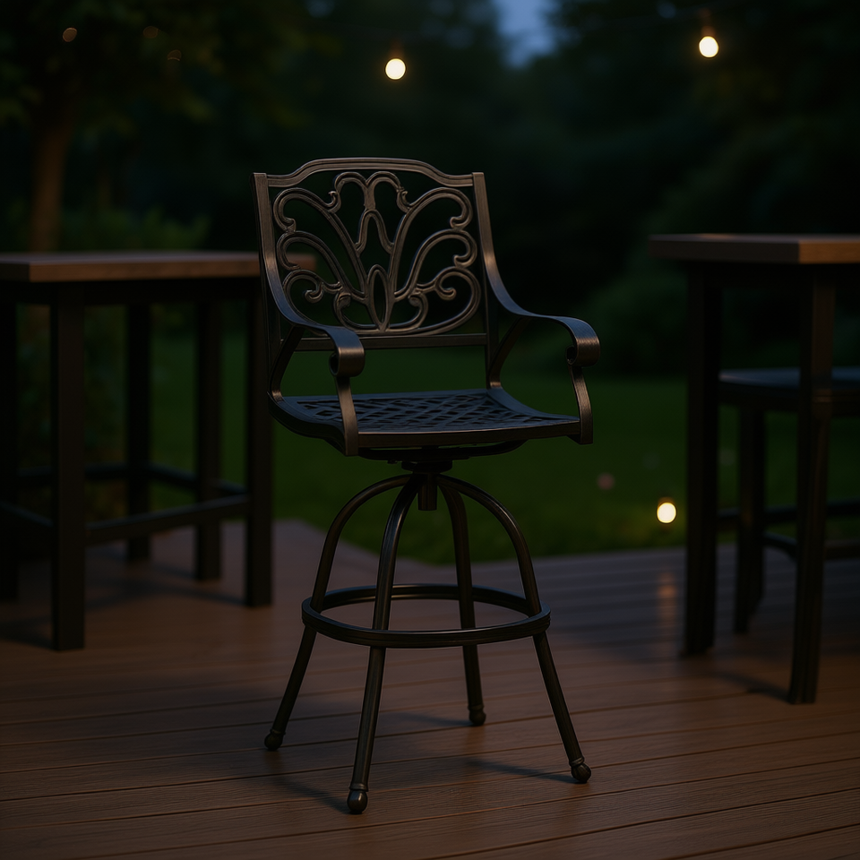 Tabouret de bar pivotant en aluminium moulé, mobilier commercial d'extérieur traditionnel, design antique, base en métal
