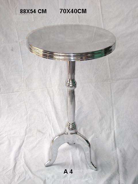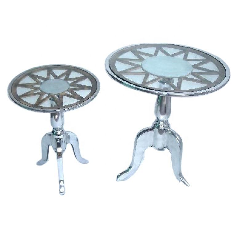 Table en aluminium moulé avec finition miroir et plateau en verre motif en terre cuite Décoration d'intérieur