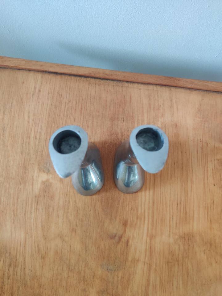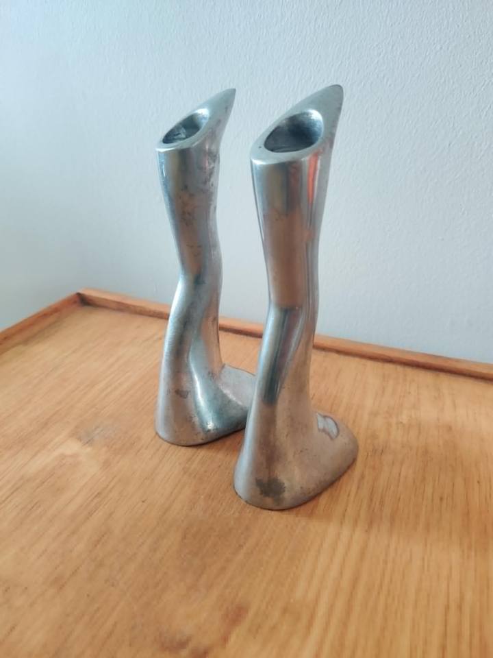 Cast Aluminum Candlestick Holders Pair Mid Century Abstract Design Vintage Collectible Home Decor Decoration