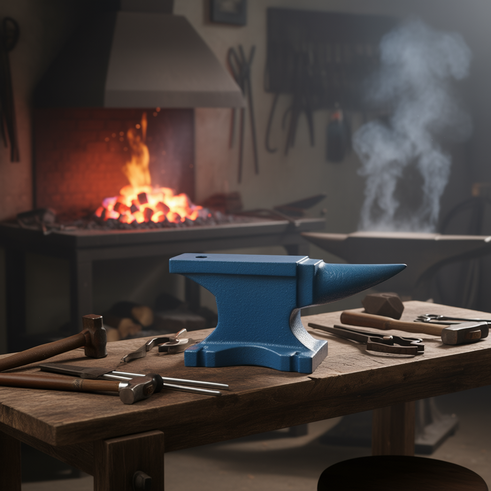 Enclume en fonte 45 kg à corne unique, revêtement électrostatique bleu, pour forge de forgeron, qualité industrielle, modèle D0100H53E2J