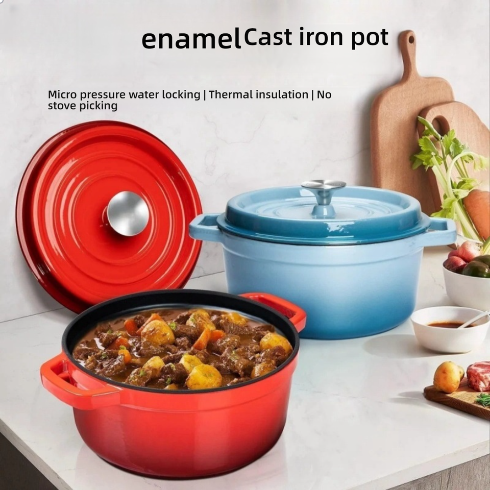 Poêle universelle en fonte sans revêtement à double poignée Utilisation multifonctionnelle durable Pots en émail à cuisson lente parfaite