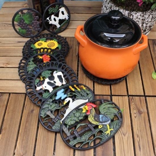 Coussinets d'isolation thermique antidérapants en fonte Tapis polyvalent en flocons blancs ronds Supports de casseroles Sous-verres en fonte résistants à la chaleur Dessous de plat