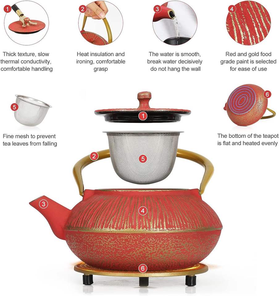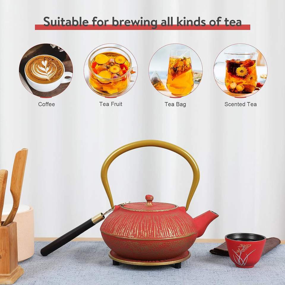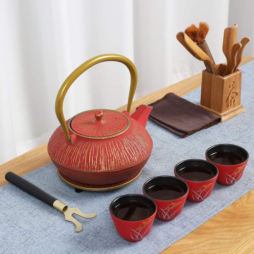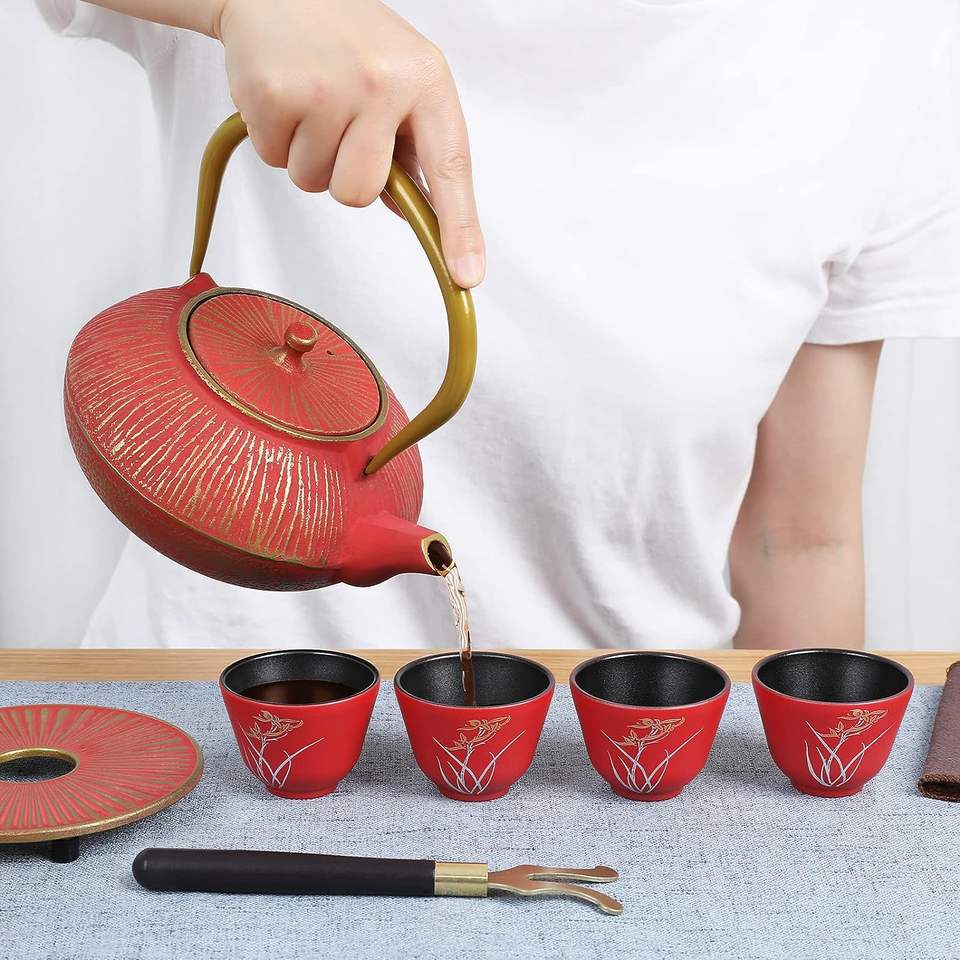 Service à théière en fonte Service à thé classique en or rouge pour femme adulte mère Fath