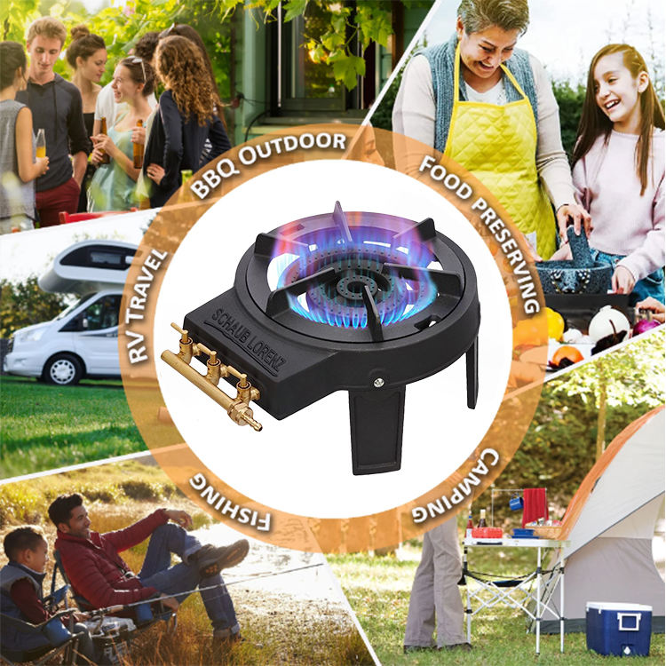 Brûleur à triple anneau en fonte 9 kW Cuisinière à gaz extérieure portable Mini cuisinière à gaz portable Plaques de cuisson Cuisinière à gaz extérieure