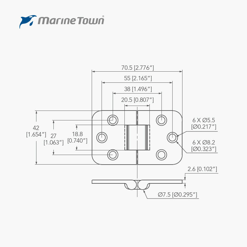 CHARNIÈRE AFFLEURANT 42x70.5mm BARIL VERS LE BAS
