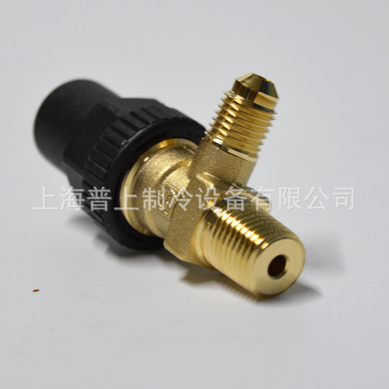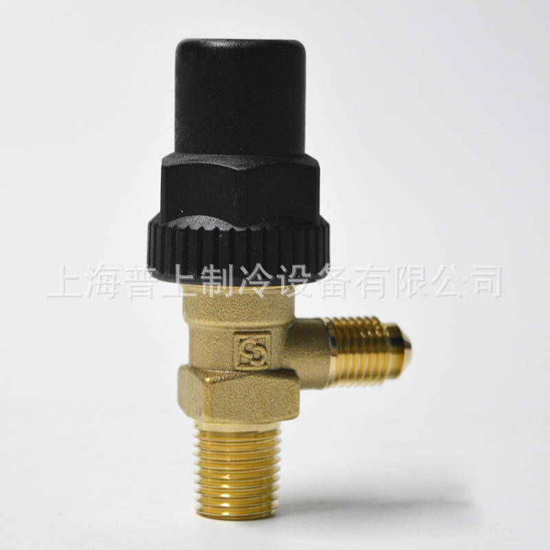 Vanne d'angle Castel série 6110, corps en laiton, revêtement plastique, flux unidirectionnel, utilisation en réfrigération