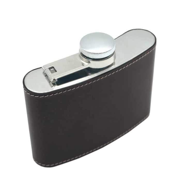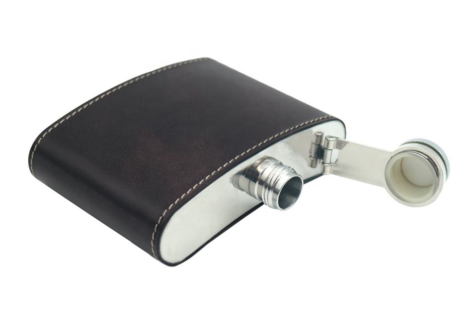 Porte-bouteille vintage en cuir de veau Castello, musée italien, 4 oz, faible MOQ, acier inoxydable, noir, brun, vert, portefeuilles