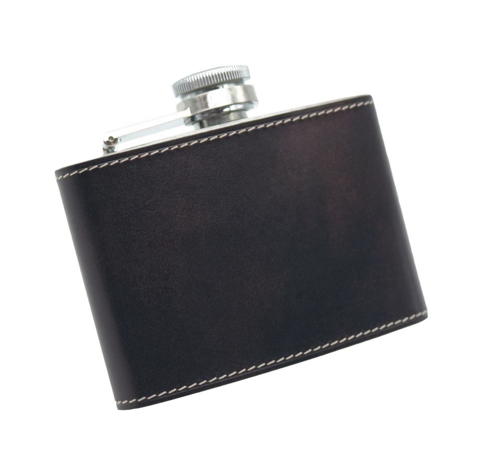 4 oz Stainless Steel Flask, Italian Calf Leather, multiple colors
