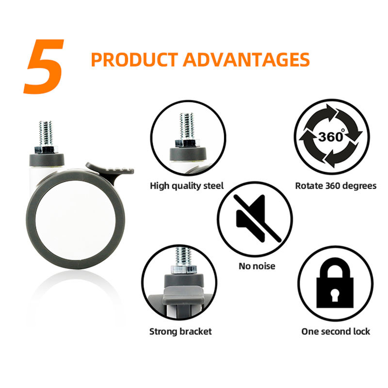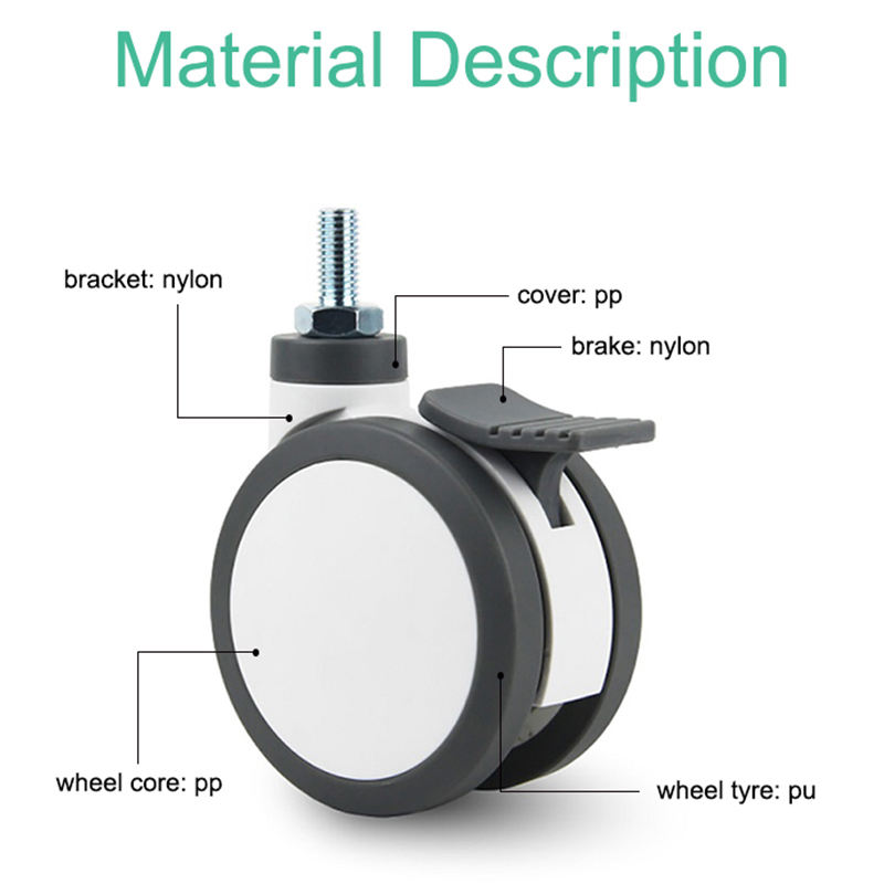 Roulette Cetral Verrouillage Double Tige Ensemble 1250mm 100mm 75cm 125Kg Lit Médical Sans Bruit Bébé Lit Roulette Roue