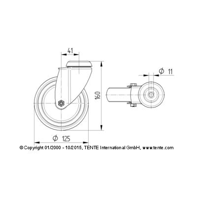 Roue en acier inoxydable avec boîtier en inox et bande de roulement TENTEprene