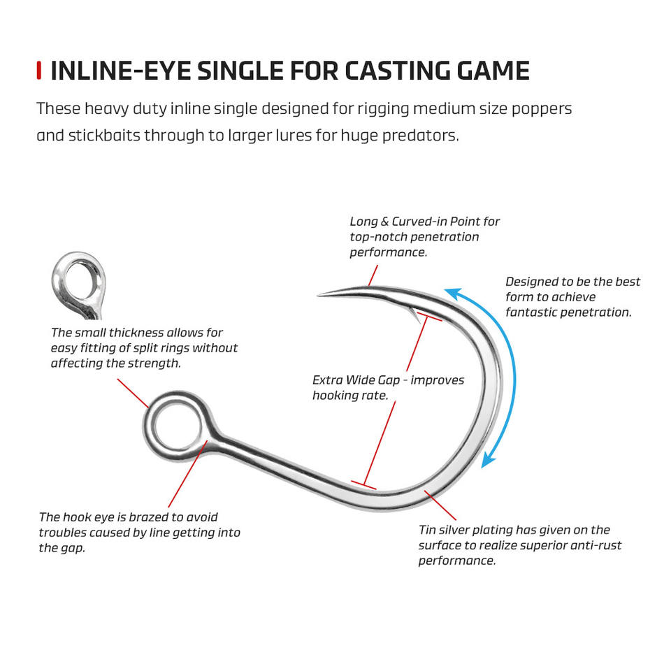Product name:Predators 5X Strong Hi-Carbon Steel Inline-eye Single Hook