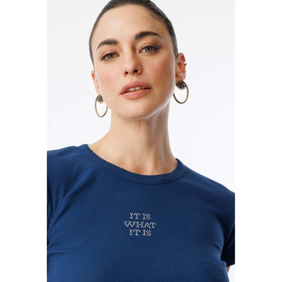 T-shirt court décontracté en coton 100% côtelé, col rond, coupe classique