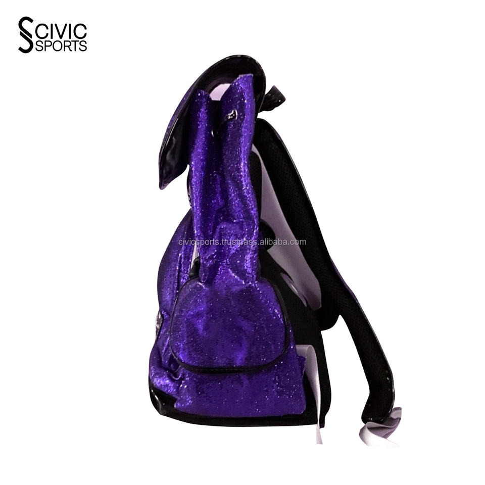 Sac décontracté avec logo d'équipe personnalisable, sac à dos bleu pailleté pour cheerleaders avec compartiment à chaussures pailleté