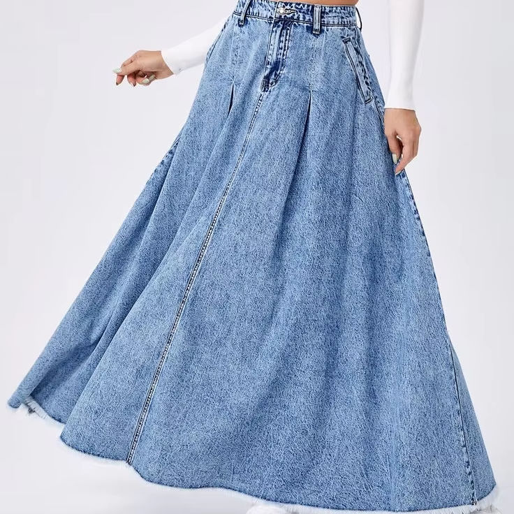 Casual Boho-Style Denim Maxi Skirts Long Formal Wardrobe Essentials for Autumn Vintage-Inspired Inspiration