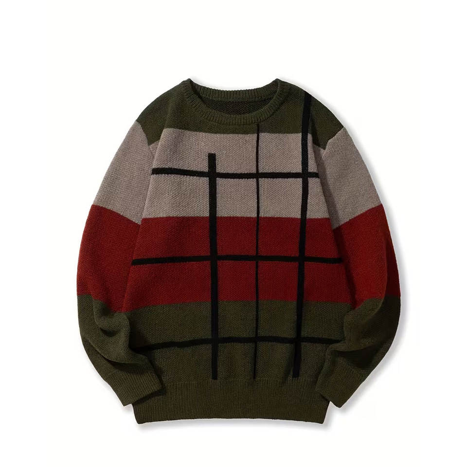 Pull en maille pour homme décontracté uni, col rond, sous-vêtement d'hiver, haut à enfiler, logo sur le devant, mélange polyester-coton, vêtements tendance