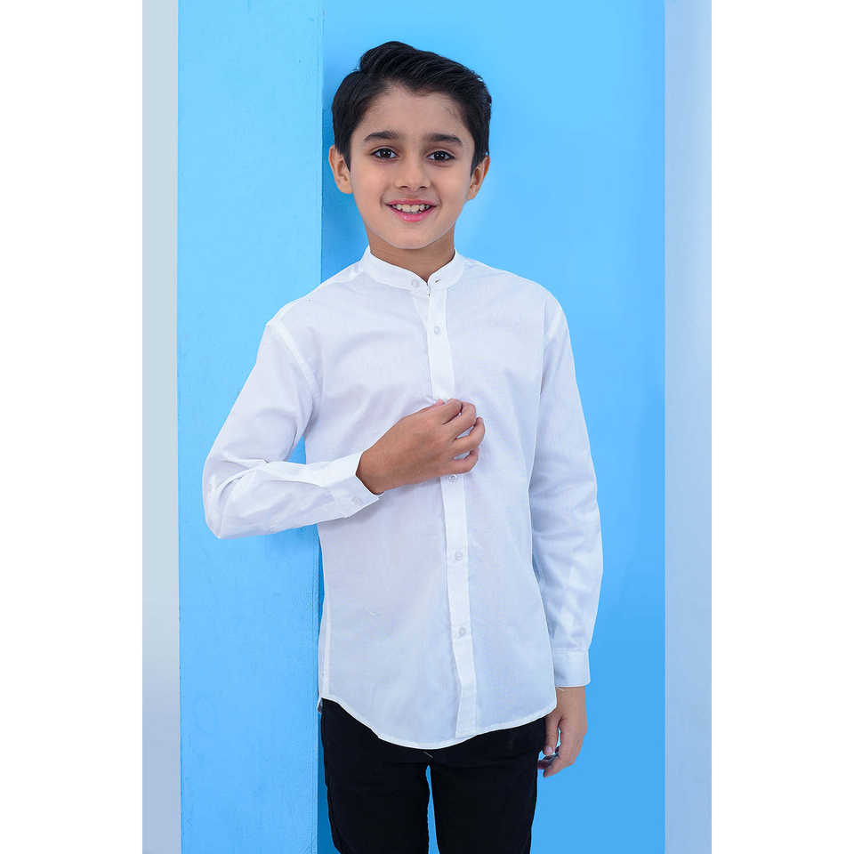 Boys Band Collar Casual Lining Shirt BCS23#10 - WhiteStyle