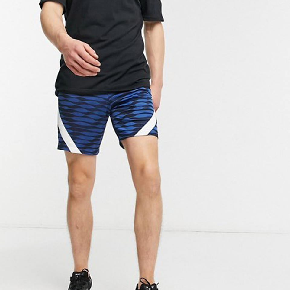 Shorts pour hommes à coupe ajustée, design décontracté pour l'été, imprimé intégral, taille élastiquée, bandes contrastées, coupe slim, avec logo.