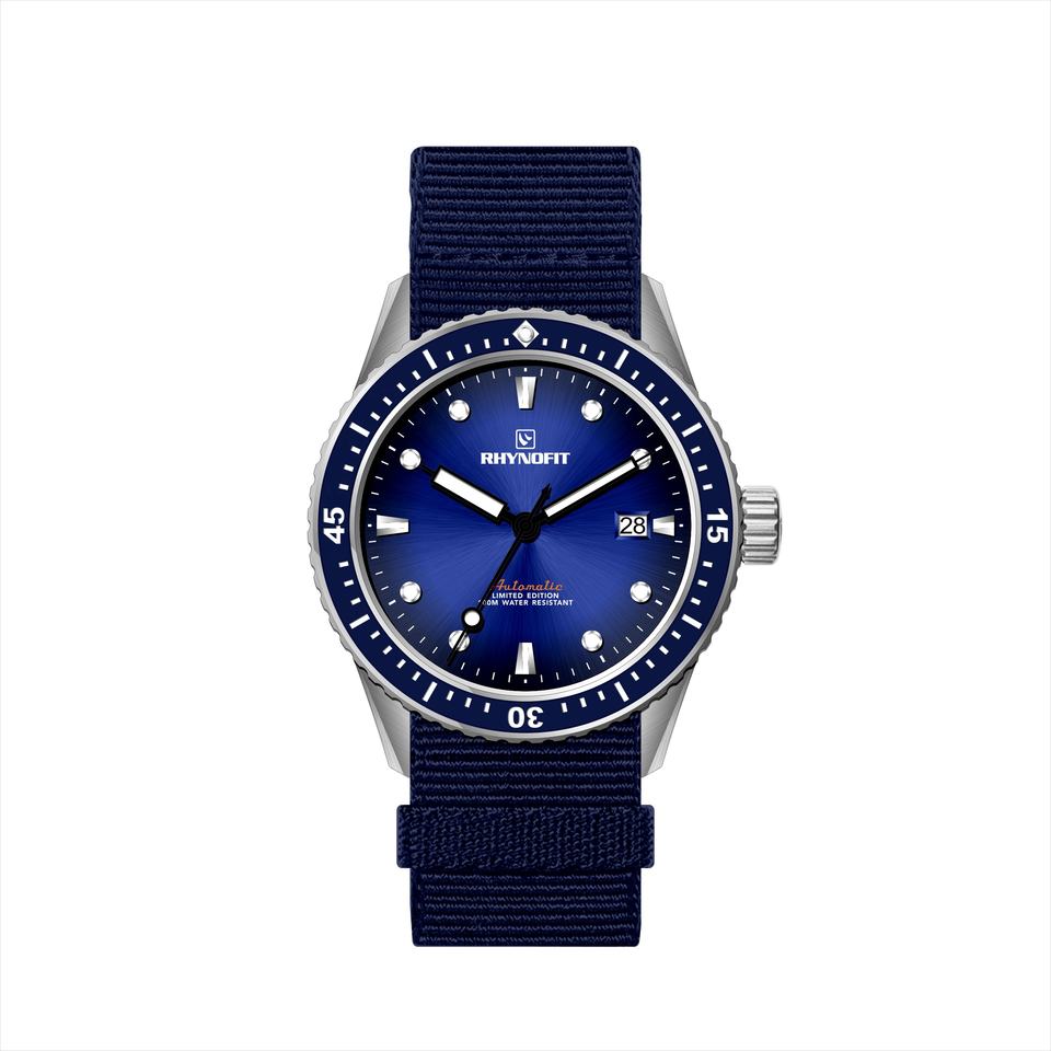 Montre mécanique automatique décontractée de sport avec cadran dégradé, insert de lunette en céramique, bracelet en nylon, étanche 10 ATM