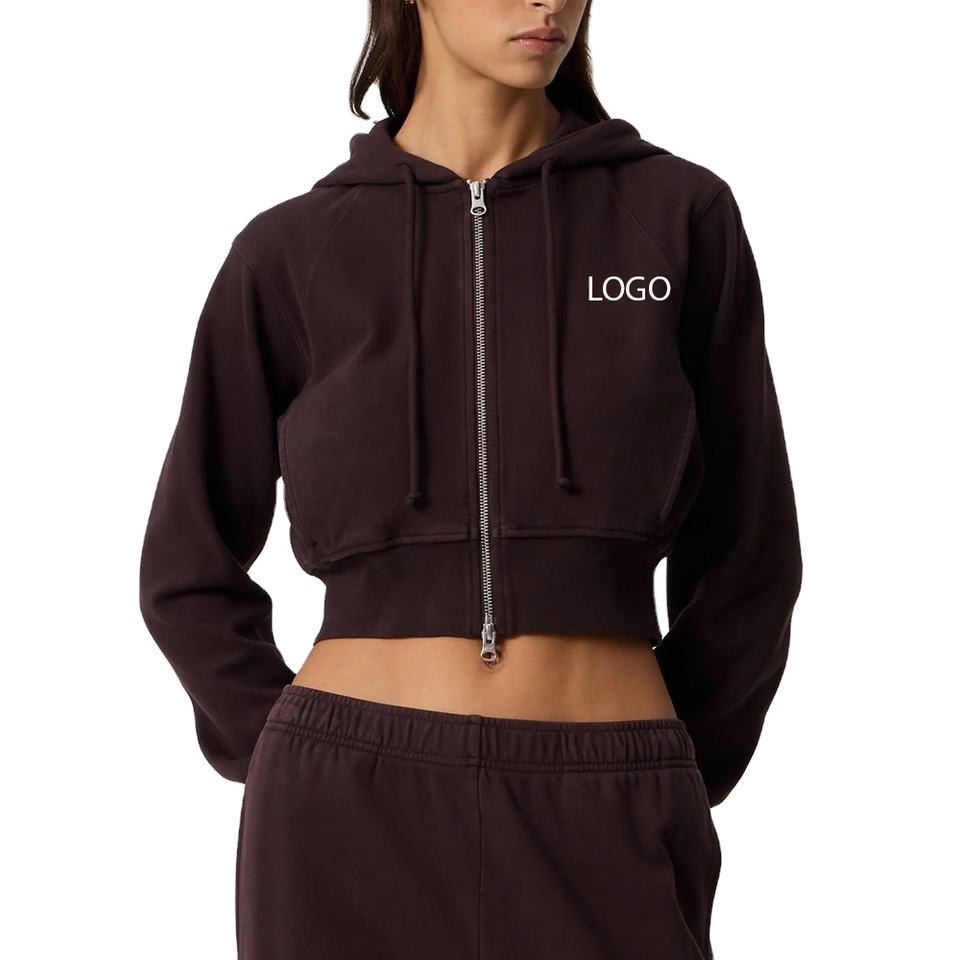Design décontracté à manches longues / Modèle économique 2026 / Modèle court avec fermeture éclair pour femme avec logo personnalisé