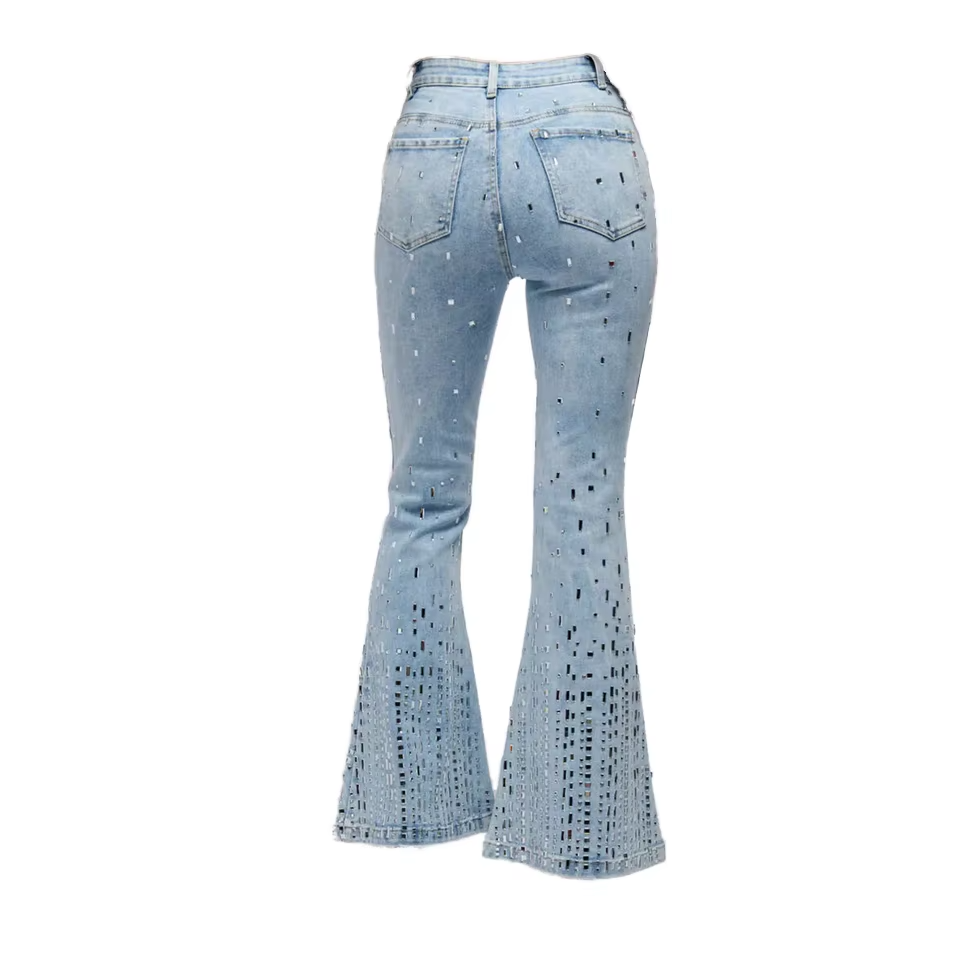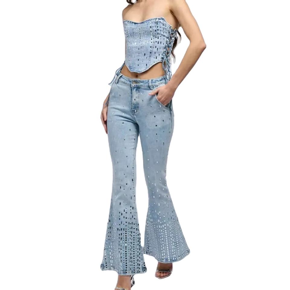 Keywords:Clothing Women sweet pants flared with rhinestone