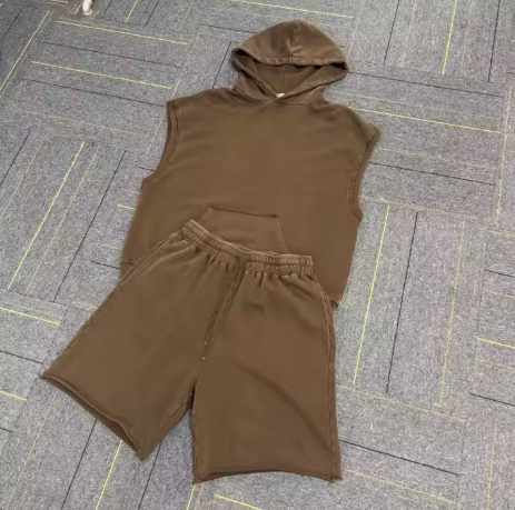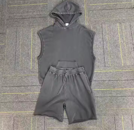 Men's Summer Vintage Acid Washed Oversized Two-Piece Set Breathable Casual Shirt and Shorts with Custom Logo Embroidery
