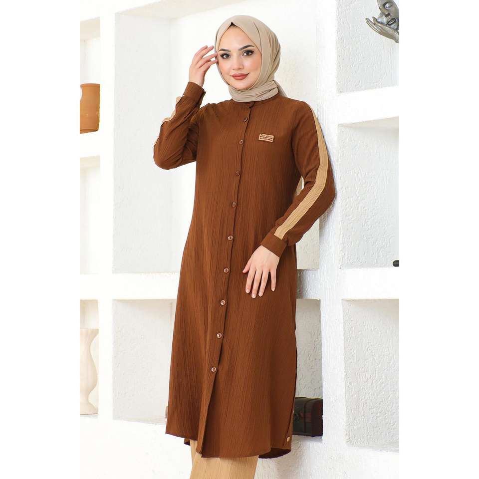 Ensemble de costume décontracté 2 pièces en coton 100% à manches longues, col rond, boutonné, longueur midi