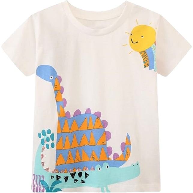 T-shirt décontracté à col en O imprimé à séchage rapide et manches courtes 100% coton pour bébés garçons disponible en plusieurs tailles