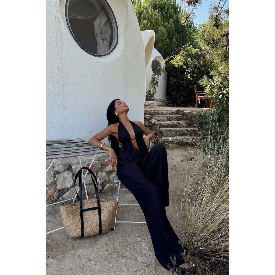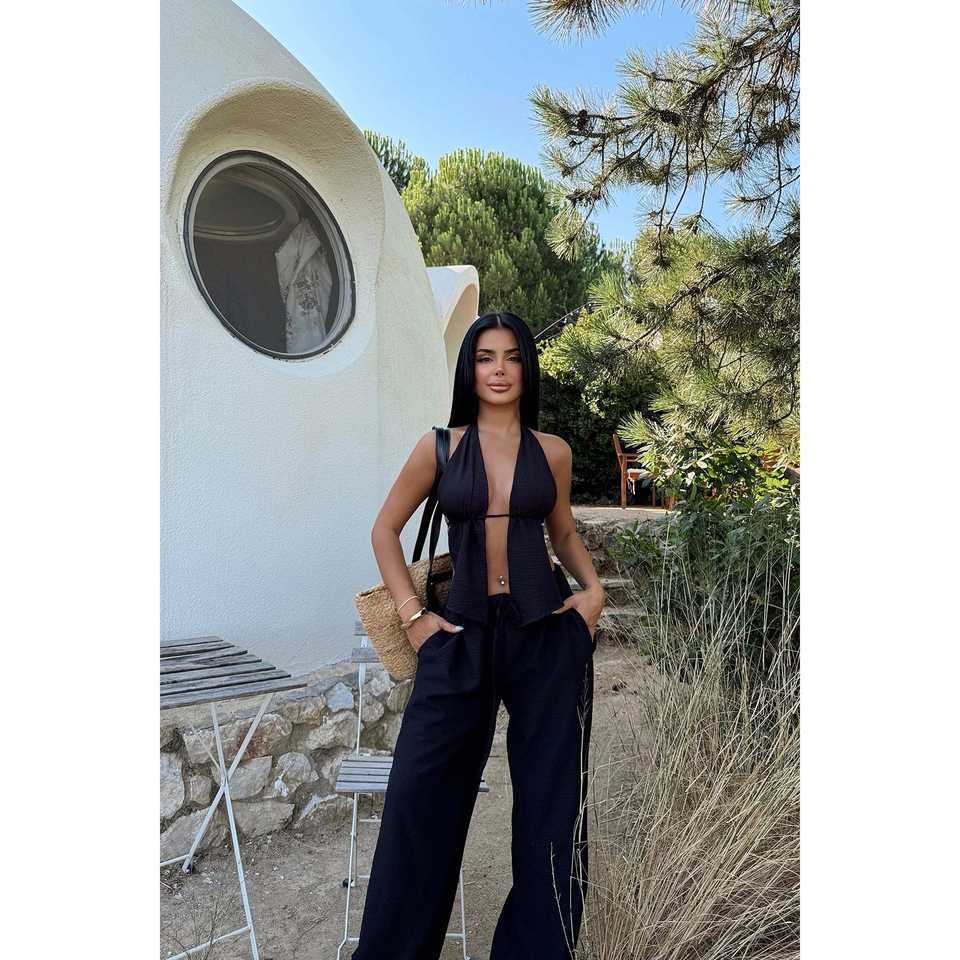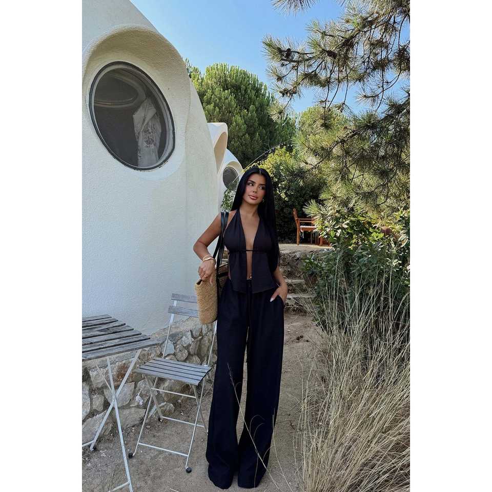 Casual Office Lady Black Lorenza Suit with Pleated Decoration and Button Styling