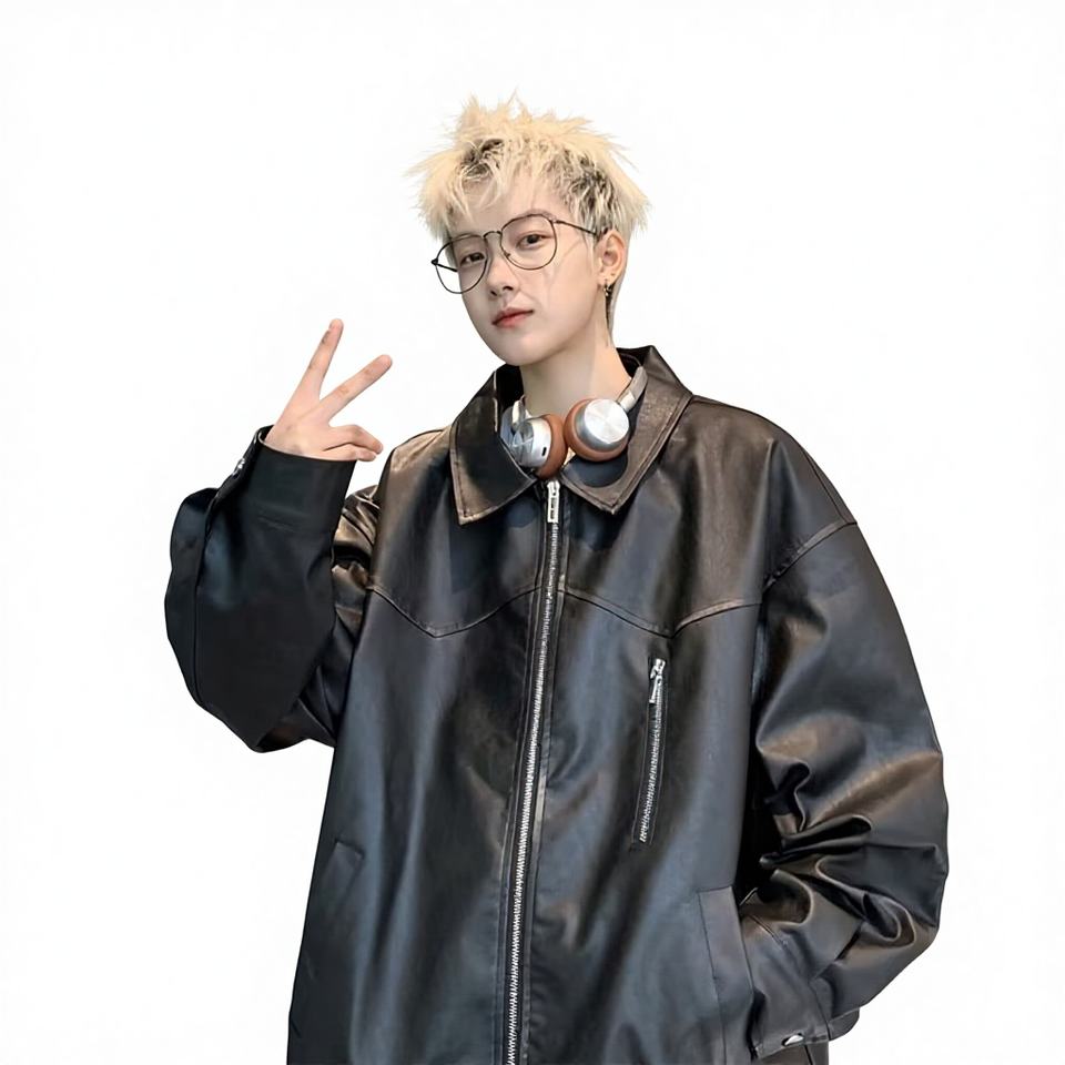 Veste en cuir PU décontractée à patchwork et couleur unie pour homme, streetwear, tendance, fermeture éclair, haut, printemps, automne, vêtements d'extérieur de haute couture