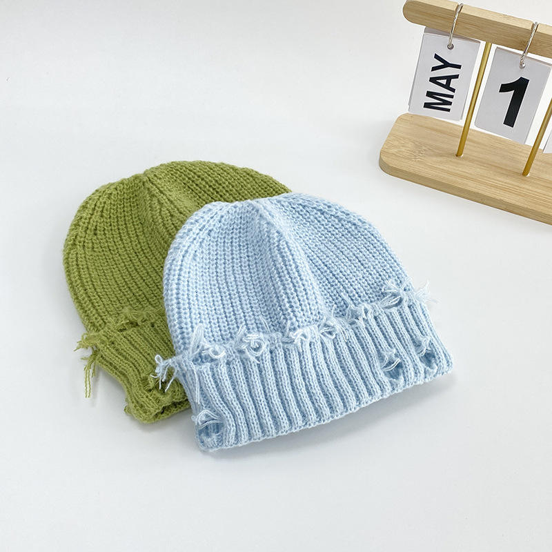 Bonnet décontracté uni respirant, bonnet en tricot rétro avec trous, garçons filles Y2k Hip-hop Harajuku, bonnet d'hiver extensible, bonnet chaud
