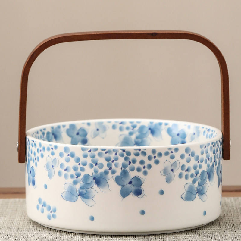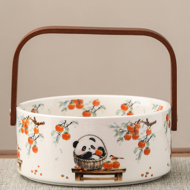 Corbeille à fruits en céramique chinoise à motif végétal, style décontracté, luxe léger, créative, avec poignée, grande assiette à fruits, haute valeur esthétique