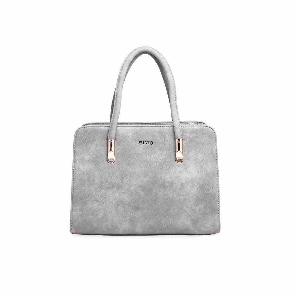 Casual Style Grey P36133 Hand Bag Geometric Pattern Large Capacity Satchel Two Handles Zip Saddle Closures Eco-Friendly PU
