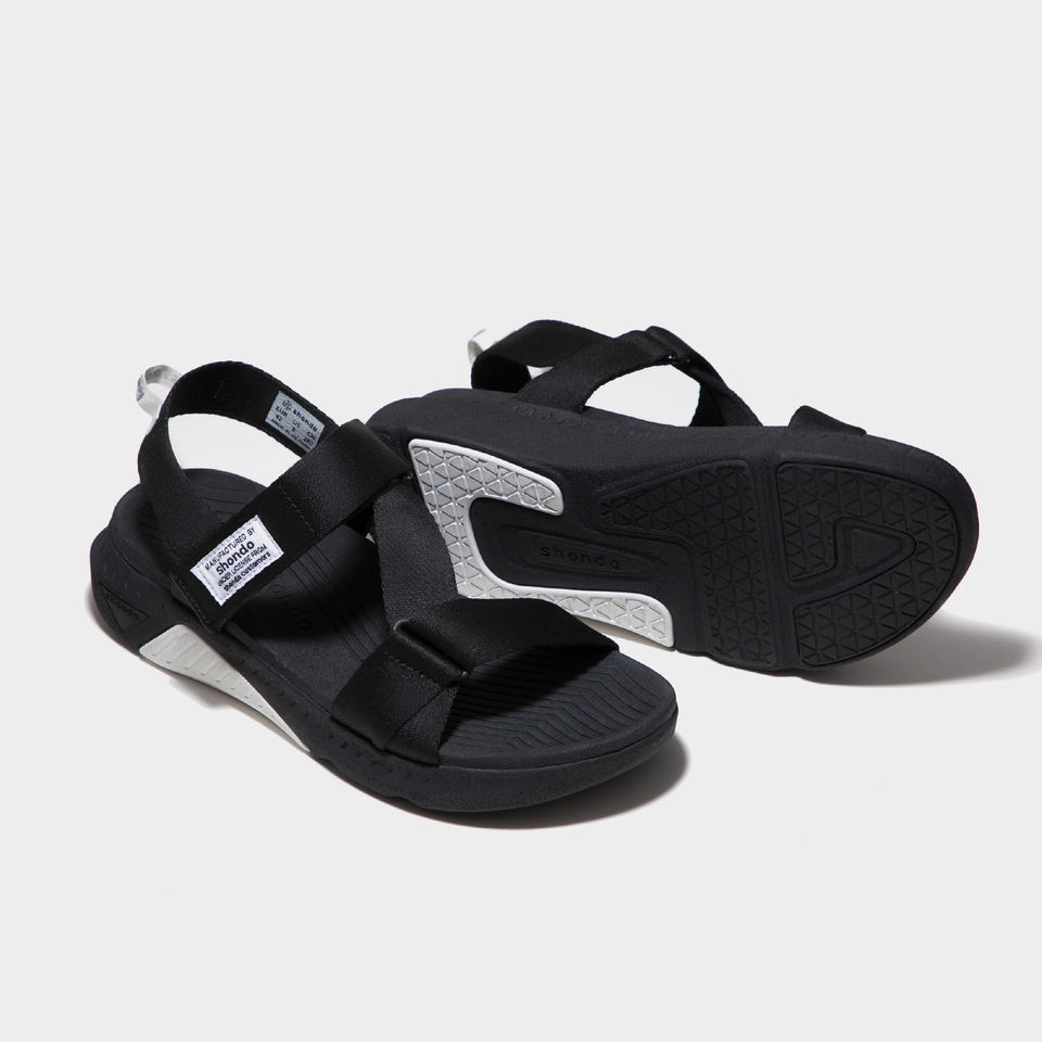 Sandales de course F7 style décontracté avec logo, design à bout ouvert, semelle noire, accents blancs, brides noires, toutes saisons, semelle intermédiaire en EVA