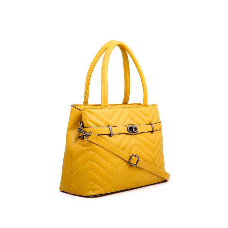 Casual Stylish P35885 Mustard Formal Hand Bag Durable Genuine Leather Tote Two Handles Saddle Soft Frame Fashionable Lady Bag